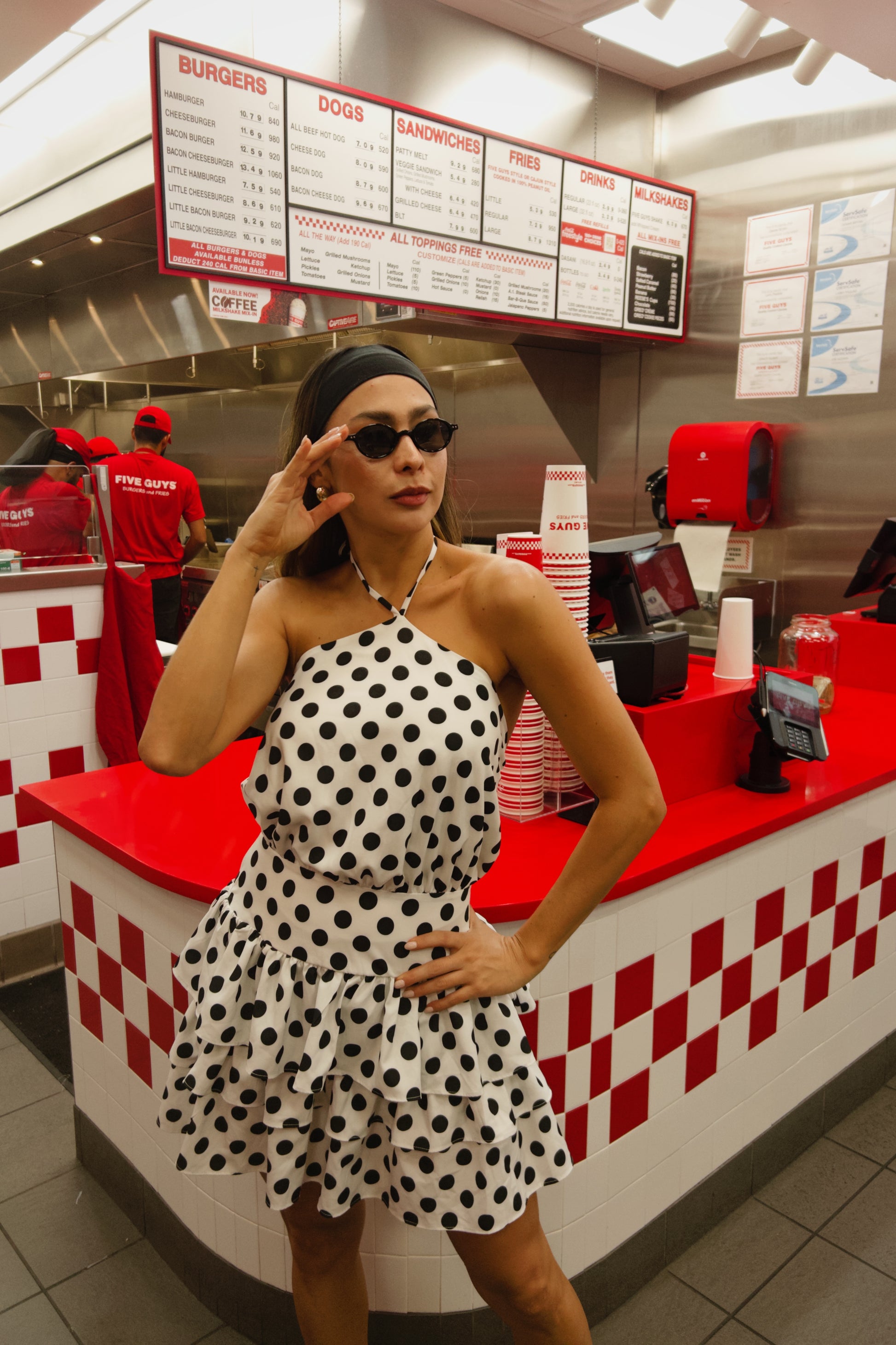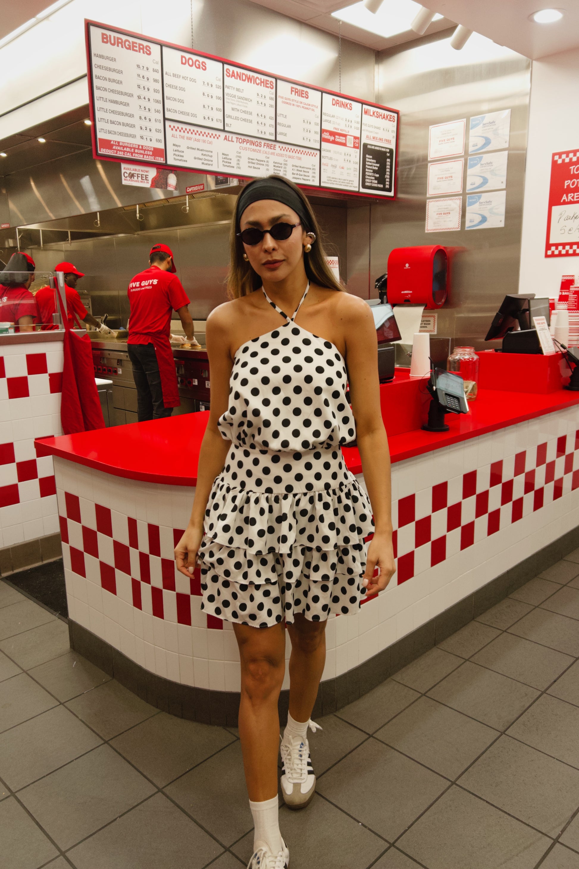 El Vestido Eva es pura energía y feminidad. Su estampado de lunares y silueta con vuelo crean un look divertido y sofisticado, perfecto para brillar con confianza en cualquier ocasión.