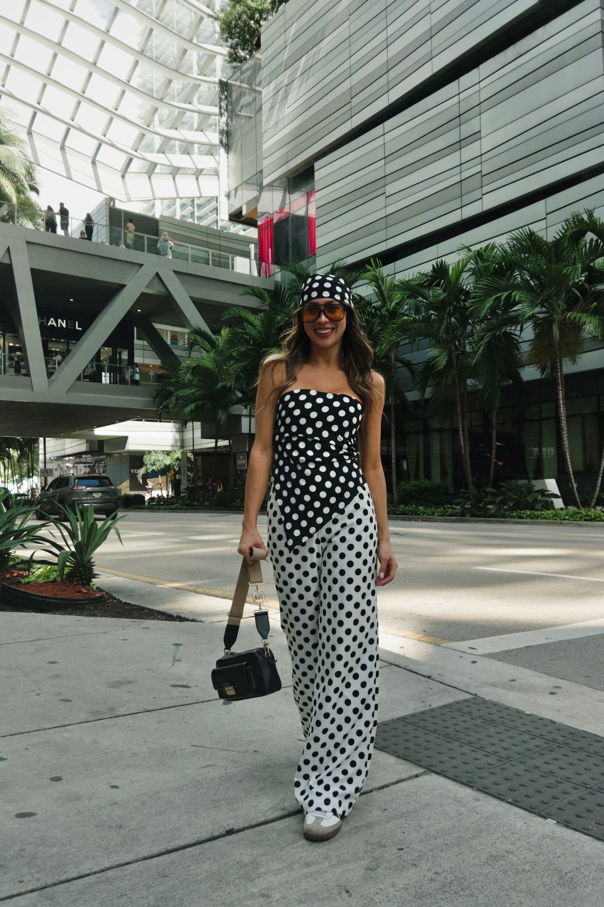 El Pantalón Pascal resalta la silueta con su caída elegante y estampado de lunares clásicos. Una prenda versátil que combina estilo, movimiento y sofisticación.