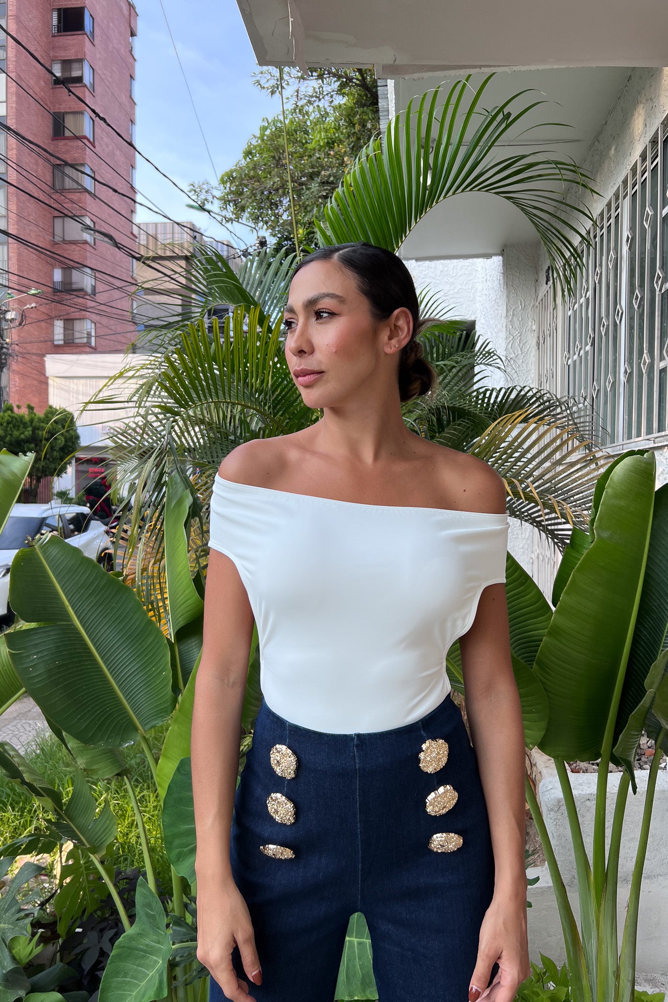 El Body Belinda es una pieza elegante y femenina que resalta tu silueta con su escote recto tipo bandeja y espalda descubierta. Ideal para looks sofisticados de día o de noche.
