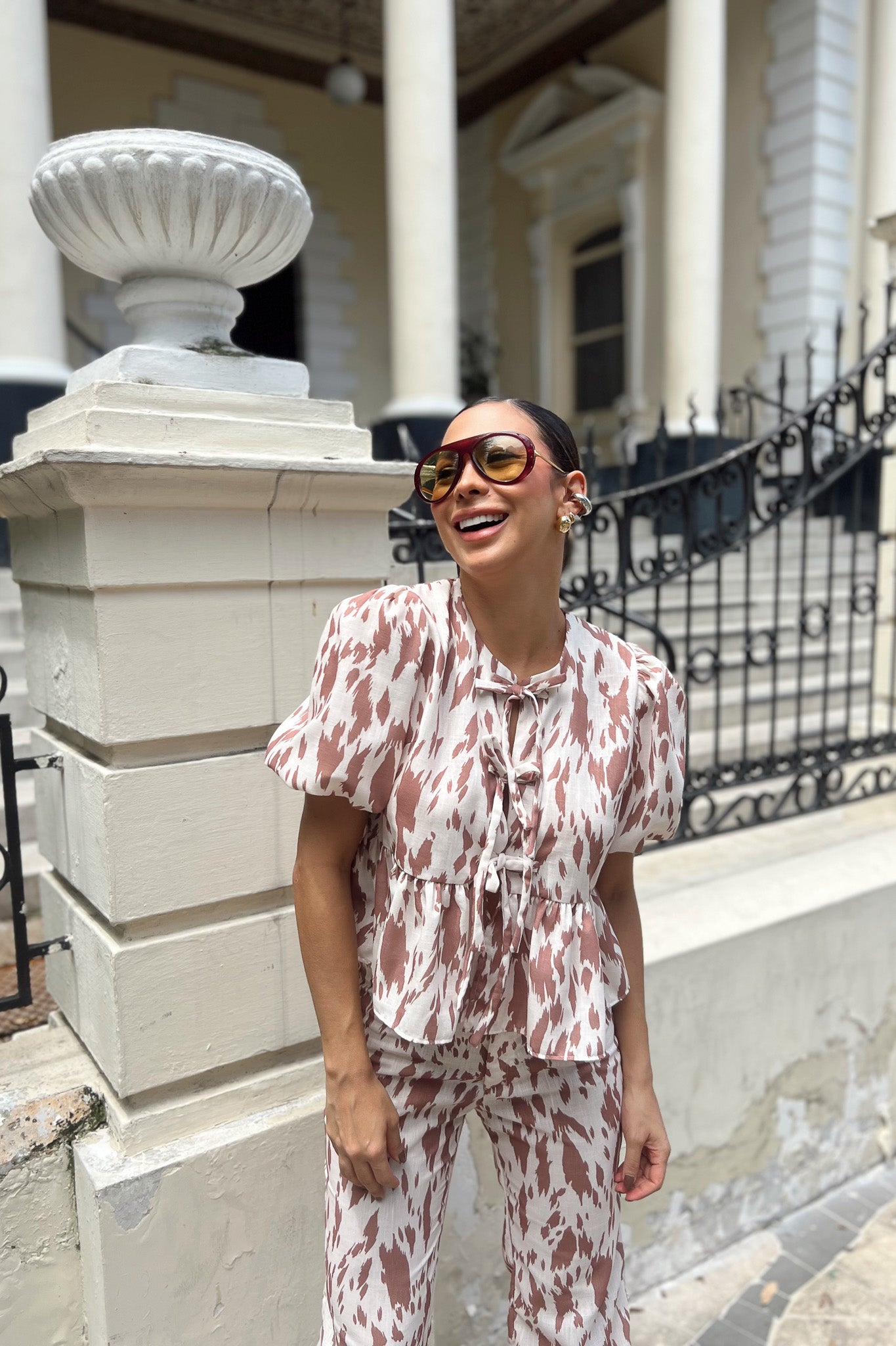 La Blusa Betsy Peplum combina elegancia y frescura con su estampado orgánico y silueta femenina. Ideal para resaltar tu estilo auténtico con un toque moderno y sofisticado.