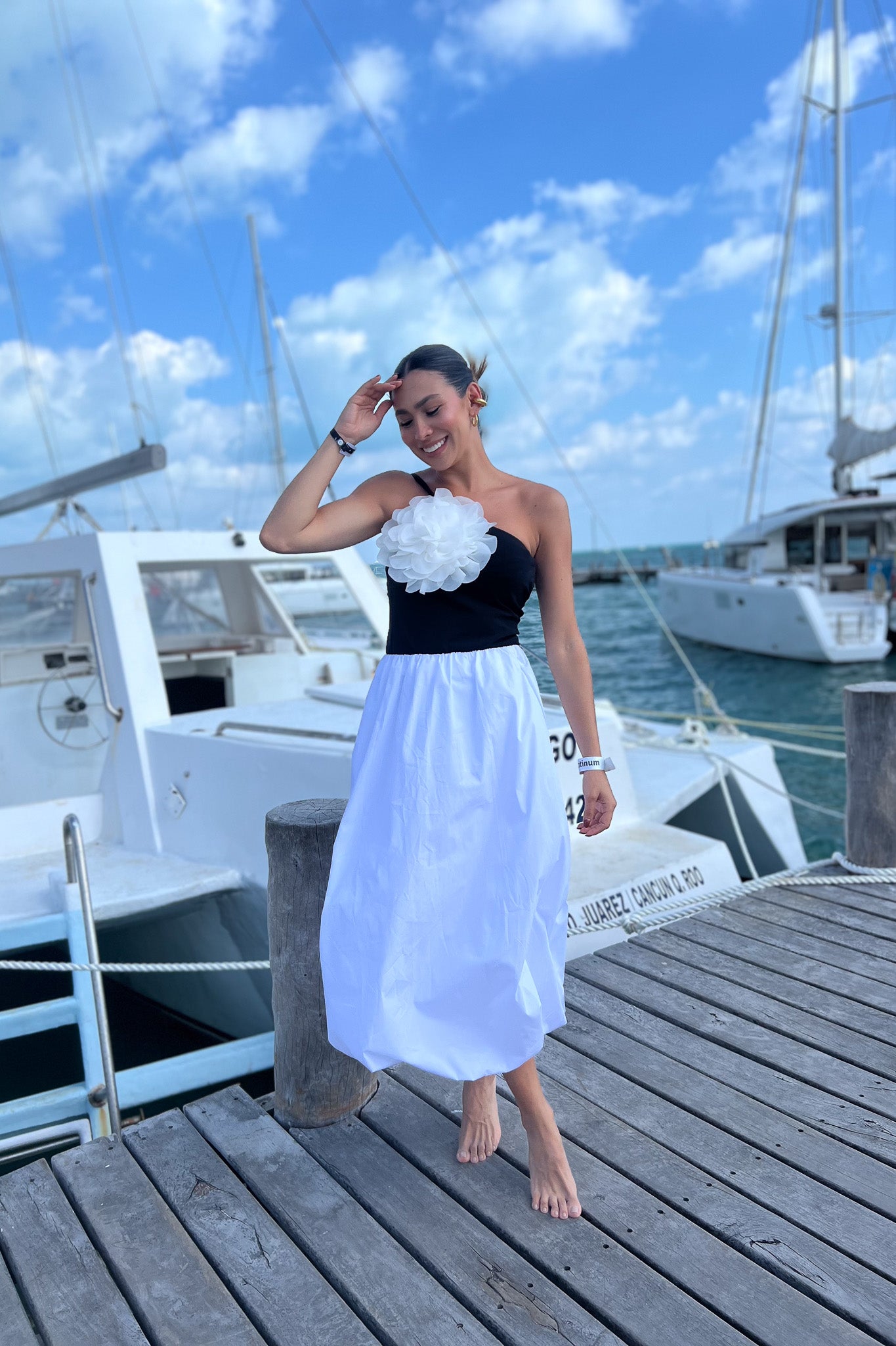 El Body Bomba Flor Blanca es una pieza icónica que celebra la feminidad con contraste y elegancia. Su diseño strapless y flor en relieve evocan fuerza, delicadeza y estilo atemporal.