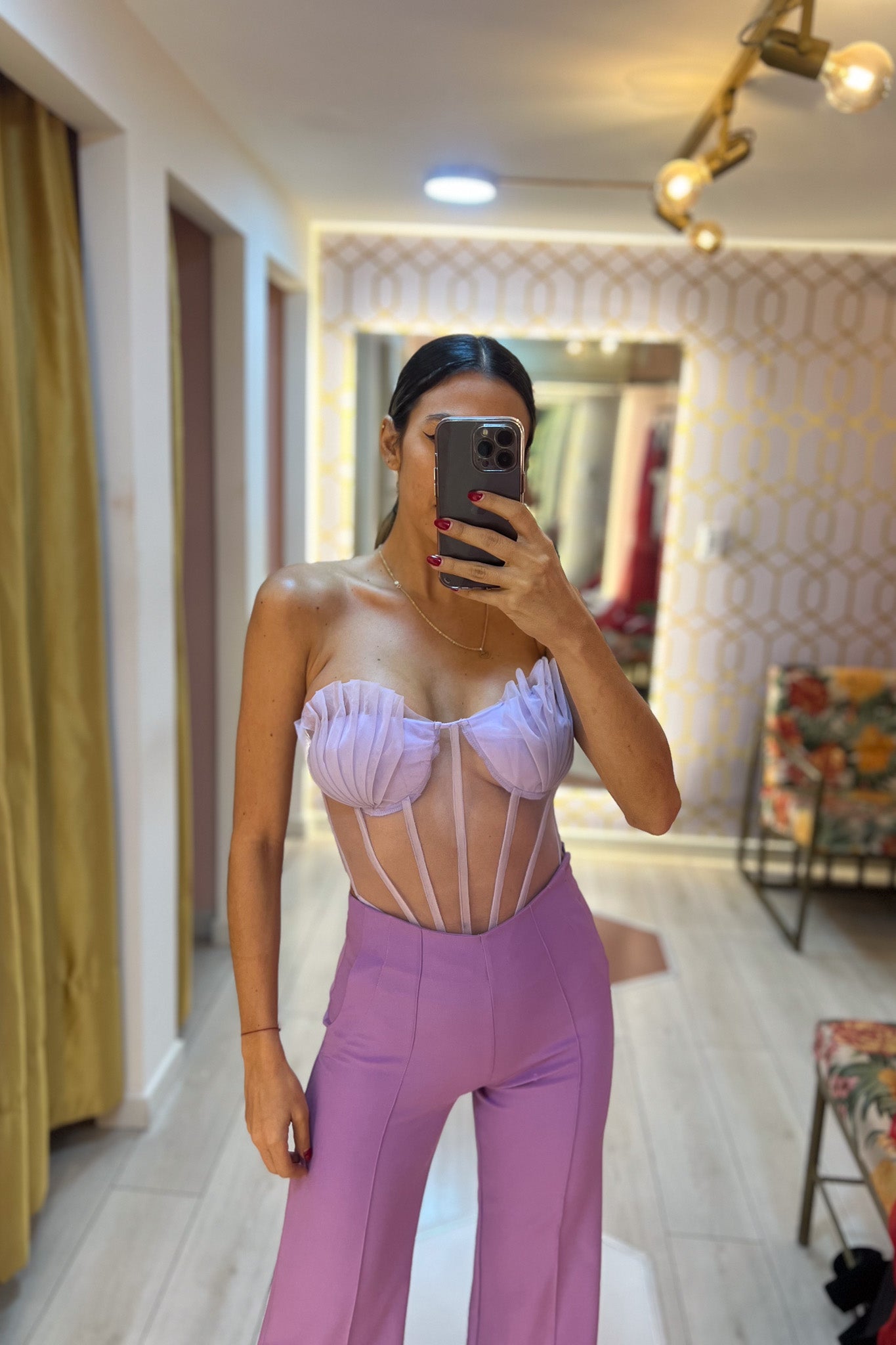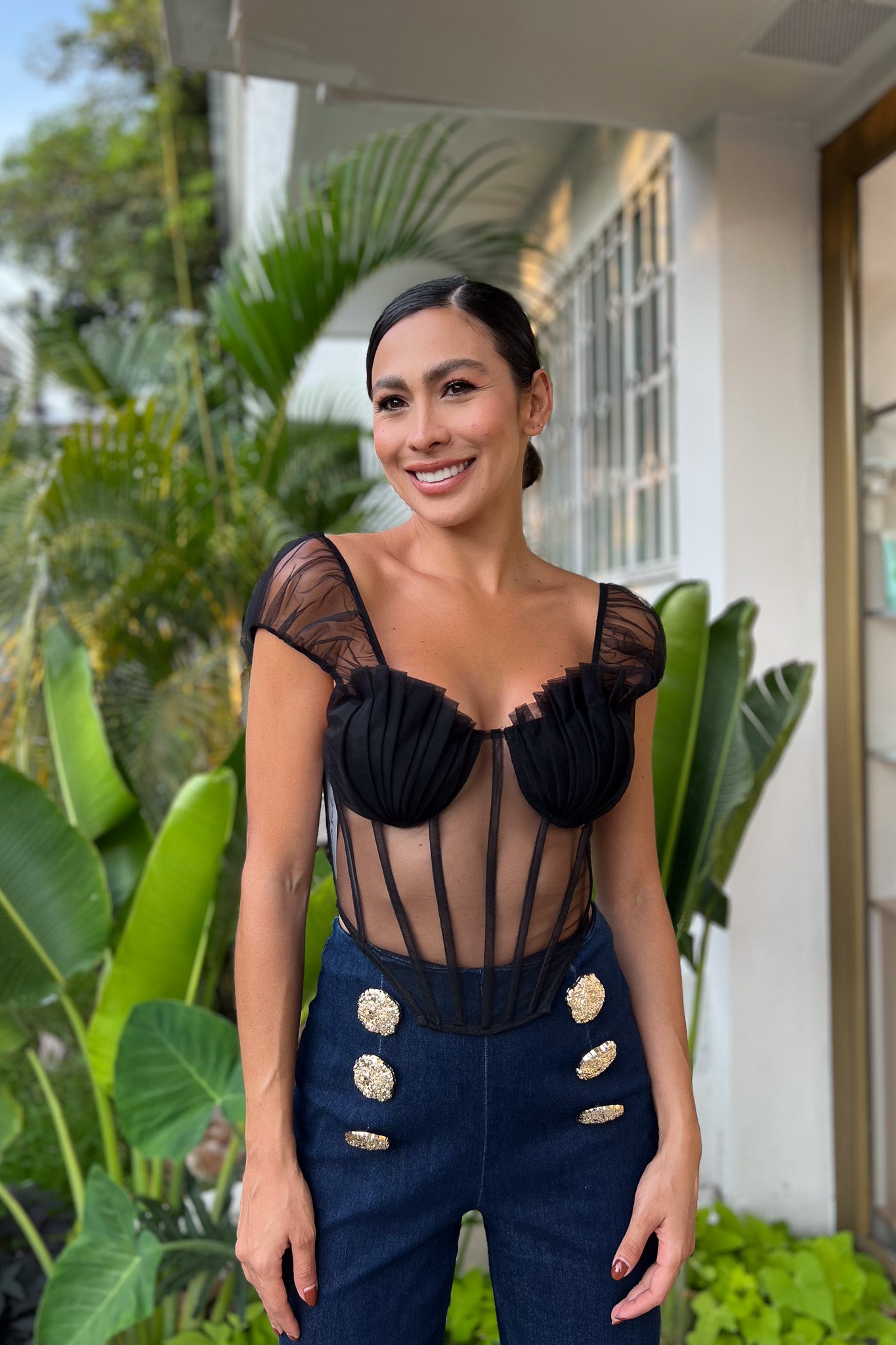 El Corset Cien exalta la silueta femenina con delicados volantes y transparencias sutiles. Una pieza sofisticada que combina sensualidad y elegancia, perfecta para destacar con gracia.