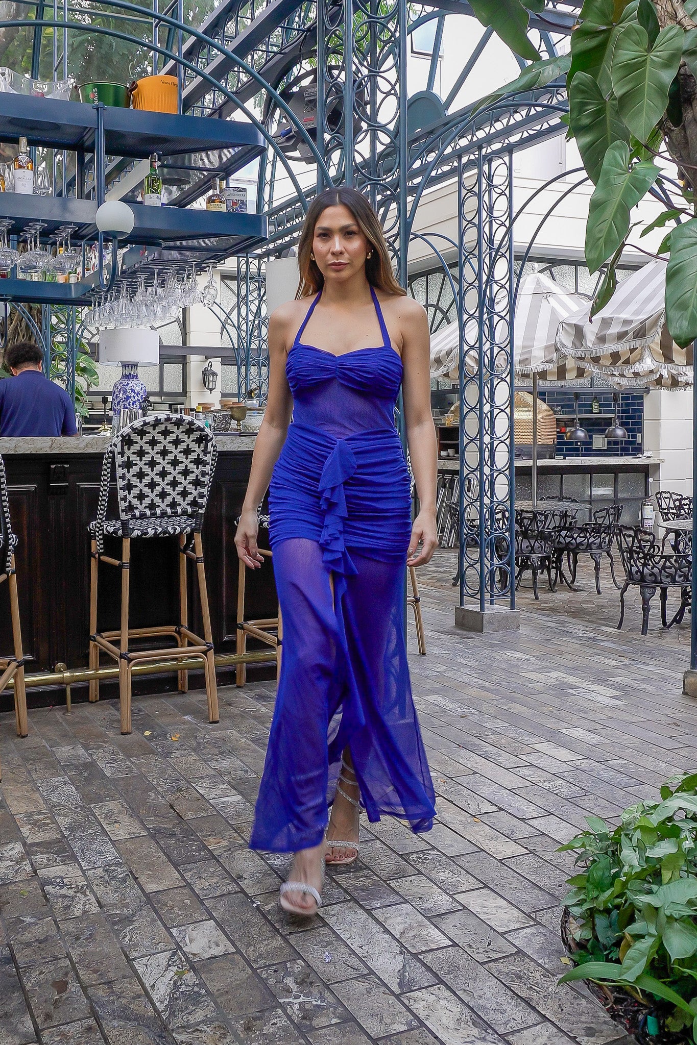 El Vestido Luciana Azul Rey combina elegancia y sensualidad con su malla translúcida fruncida y su tono vibrante. Diseñado para realzar la silueta y destacar en eventos especiales o noches de verano. Un diseño colombiano que refleja fuerza, feminidad y confianza.