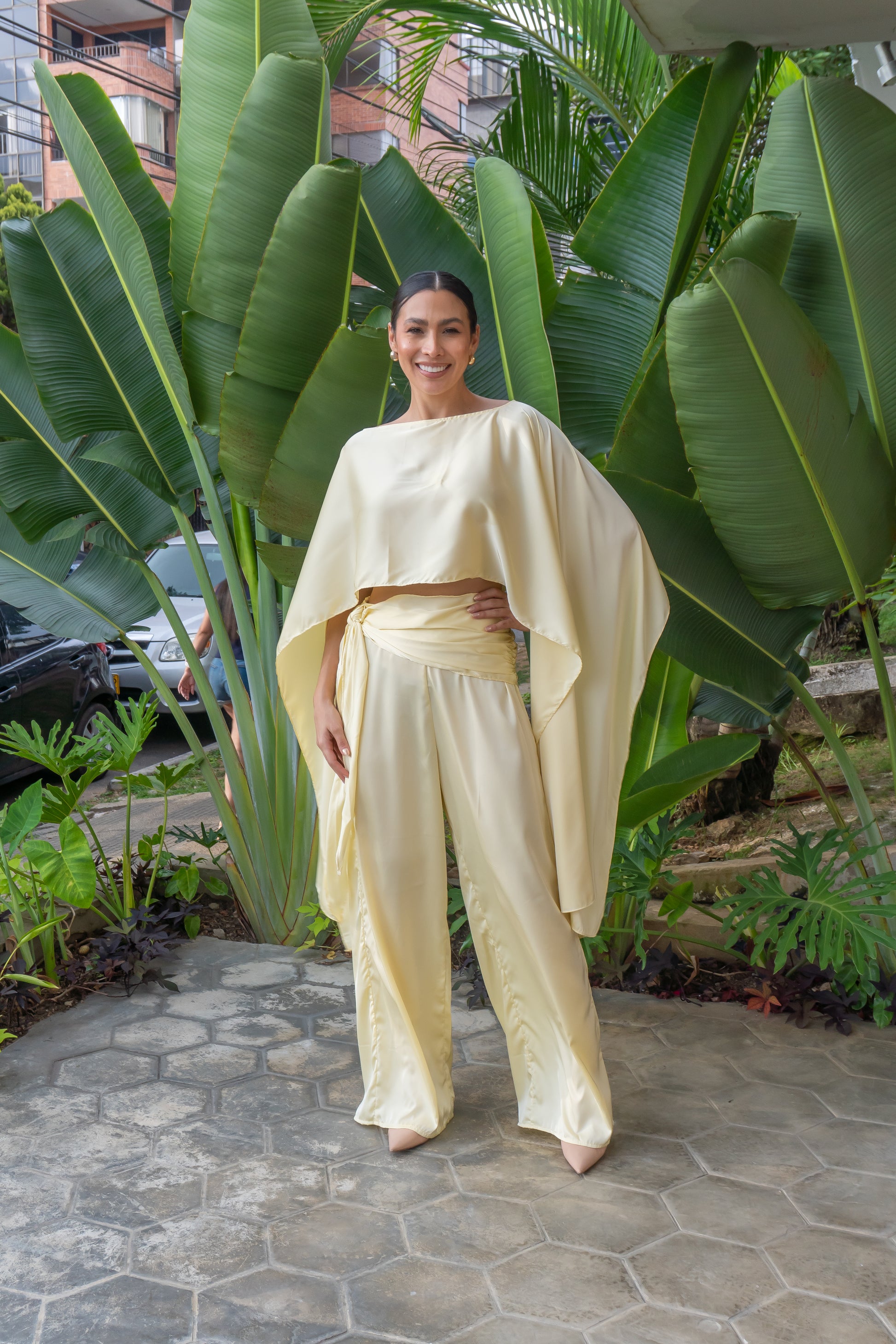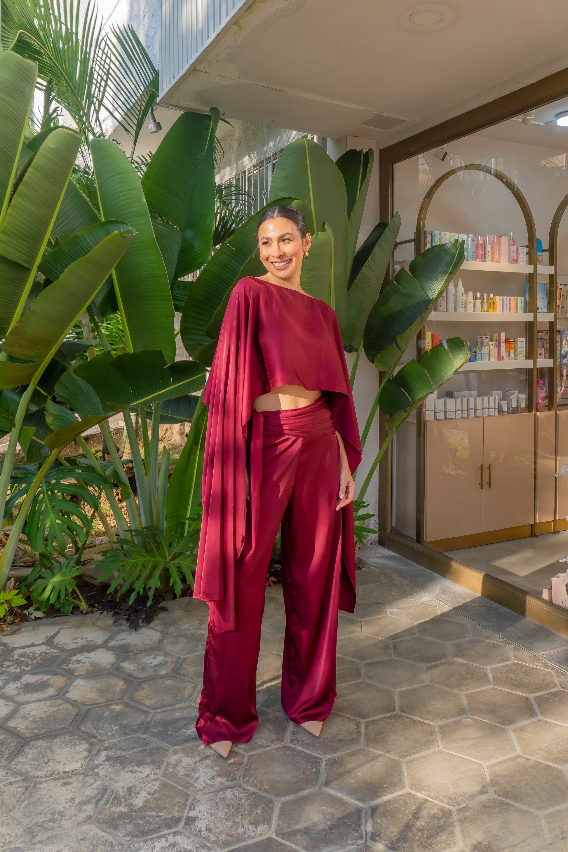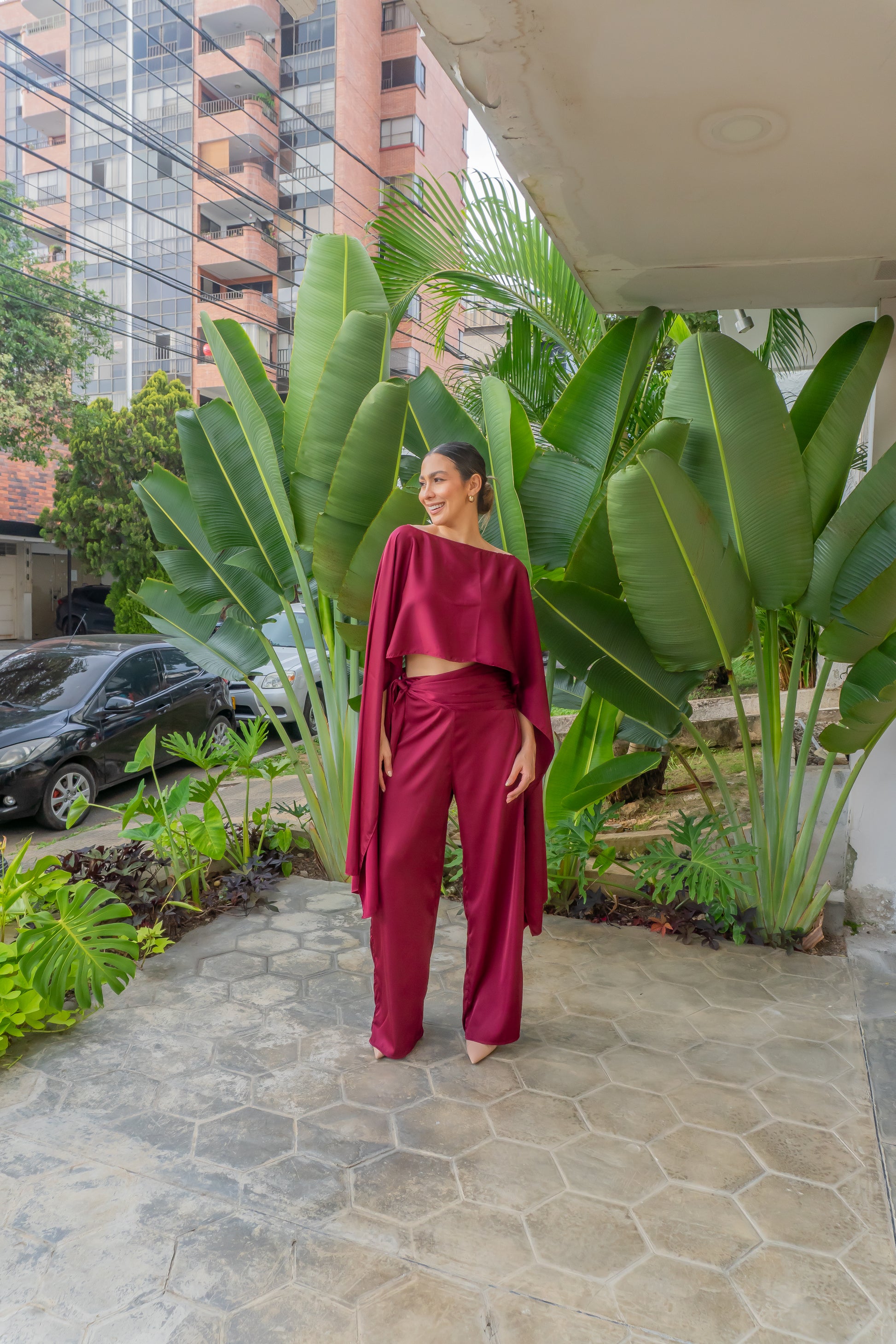 Disponible en amarillo y vino, colores que destacan por su sofisticación y versatilidad, el Conjunto Percy es ideal para eventos de día o de noche, celebraciones, cenas especiales o para elevar un look cotidiano con un aire refinado.